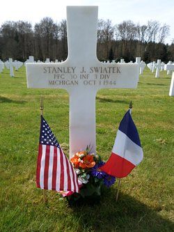 Pfc Stanley J. Swiatek was a production worker employed by the Dodge Brothers Company.Source of information: Leo Minne, www.abmc.gov, www.wwiimemorial.com, www.ancestry.com -1930/1940 Census / Headstone and Interment Record / U.S. Draft Cards Young Men / U.S. WWII Hospital Admission Cards, History of the 3rd Infantry Division