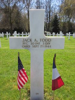 Pfc Jack A. Todd attended Libbey High School and Woodward High School. He was employed by the Ransom & Randolph Co.He enlisted in Toledo, Ohio on 29 March 1943.