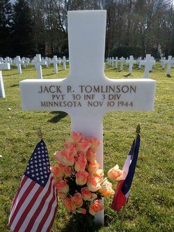 Pvt Jack R. Tomlinson attended high school for two years and worked on the family farm, before he enlisted on 28 January 1944 and trained at Camp Wolters, Texas.He was killed by small arms fire in the face.