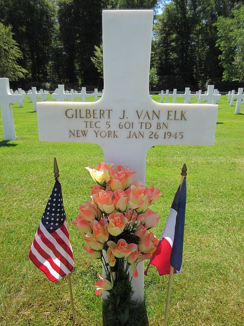T/5 Gilbert J. Van Elk was employed at the Bulkley Dunton Company before he volunteered for the Army of the United States in New York City, New York on 24 September 1942.Source of information: Peter Schouteten, www.abmc.gov, www.wwiimemorial.com, www.archives.gov, www.ancestry.com - Headstone and Interment Record / U.S. WWII Draft Cards Young Men / Moran Family Tree / 1930 Census / New York Birth Index, www.findagrave.com - Coleman, www.tankdestroyer.net - Audie Murphy, Manhattan Telephone Directory - 1940 (Image 154)