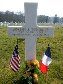 2nd Lt Joseph J. Wenda attended high school for four years and was a welder, employed by the General Electric Company, before he enlisted in Philadelphia, Pennsylvania on 7 November 1942. He was sent overseas on 28 August 1944.Source of information: Leo Minne, www.abmc.gov, www.wwiimemorial.com, www.ancestry.com - Headstone and Interment Record / 1930/1940 Census / U.S. WWII Draft Cards Young Men / U.S. WWII Hospital Admission Cards, History 3rd Infantry Division WWII