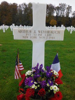 Pvt Arthur J. Weyhrauch attended high school for three years and was an addressograph operator, employed by The Brooklyn Eagle newspaper.He was sent overseas in Augus 1944.