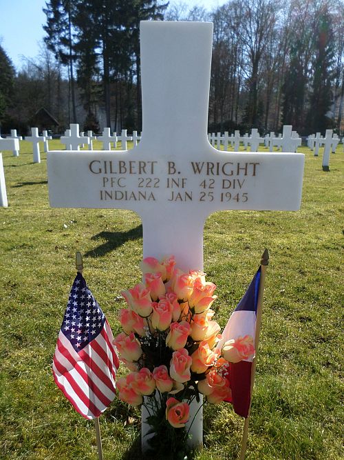 Pfc Gilbert B. Wright attended Charlotteville High School and was employed by the Bridgeport Brass ordnance plant before he enlisted in 22 May 1944 and was sent overseas in December 1944.Source of information: Peter Schouteten, www.abmc.gov, www.wwiimemorial.com, , www.ancestry.com - Headstone and Interment Record / 1920 Census / U.S. WWII Draft Cards Young Men, www.findagrave.com, www.newspapers.com – The Indianapolis News 2 April 1945