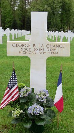 S/Sgt George B. La Chance attended high school for four years and was a bus driver, employed by the Lake Linden Hubbell High School, before he enlisted in Escanaba, Michigan on 14 February 1941.From November 1943 until February 1944, in Italy, he was hospitalized for cold injuries at his foot.