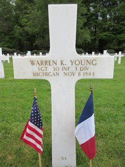 Sgt Warren K. Young attended high school for three years and was a graduate of the Northwestern University. He was employed at the Fisher Body Aircraft Company.He enlisted in Detroit, Michigan on 17 February 1943 and was sent overseas in October.