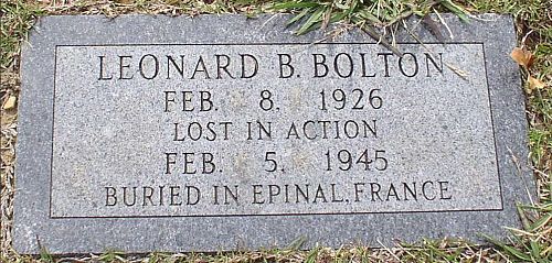 Pvt Leonard B. Bolton graduated from Hot Springs High School.He enlisted at Camp Joseph T. Robinson, Arkansas on 15 June 1944.