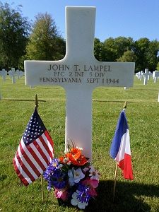 Pfc John T. Lampel was a miner before he enlisted in Altoona, Pennsylvania on 29 April 1942.Source of information: Leo Minne, www.abmc.gov, www.archives.gov – WWII Enlistment Record, www.ancestry.com – Pennsylvania Veteran Compensation Application Files WWII 1950-1966 / 1940 Census / U. S. Draft Cards for Young Men, FindaGrave.com