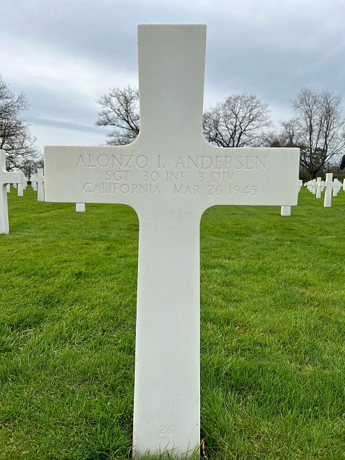 Sgt Alonzo I. Andersen attended Greenville High School and was a panel patcher employed by the Red River Lumber Co. Later, he worked on the Mare Island Navy Yard in Vallejo.Source of information: Leo Minne, www.abmc.gov, www.wwiimemorial.com, www.ancestry.com - 1930/1940 Census / Headstone and Interment Record / U.S. WWII Draft Cards Young Men / U.S. WWII Hospital Admission Cards, History 3rd Infantry Division WWII