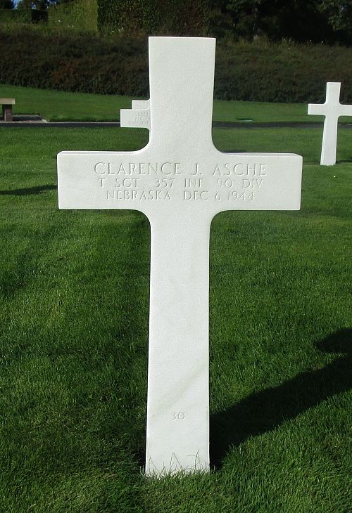 T/Sgt Clarence J. C. Asche was first buried at the Temporary American Military Cemetery in Limey, France.Source of information: Peter Schouteten, www.abmc.gov, www.wwiimemorial.com, www.ancestry.com - Headstone and Interment Record / Vicki Kerber Johnson Tree, www.findagrave.com