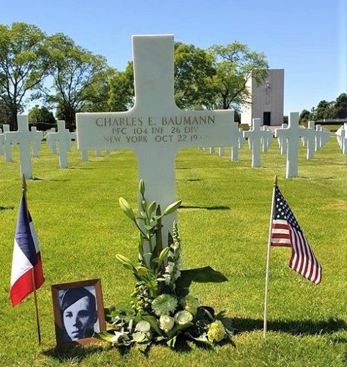 Pfc Charles E. Baumann was employed at the Metropolitan Life Insurance Company before he enlisted in January 1943. He was sent overseas in September 1944.He was first buried at the Temporary American Military Cemetery in Andilly, France.