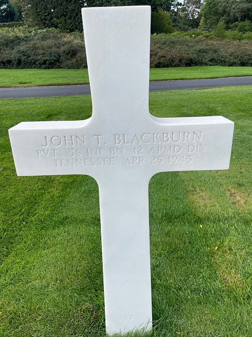 Pvt John T. Blackburn enlisted at Camp Forrest, Tennessee on 14 October 1942.Source of information: Peter Schouteten, www.abmc.gov, www.wwiimemorial.com, www.archives.gov - WWII Enlistment Record, www.ancestry.com - Headstone and Interment Record / 1920 Census, http://www.12tharmoredmuseum.com