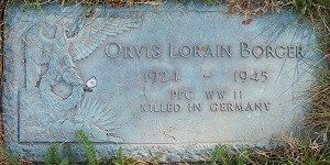 Pfc Orvis L. Borger attended high school for four years before he enlisted in Altoona, Pennsylvania on 12 June 1943 and went overseas on 3 January 1944.He is remembered at the Centre County Memorial Park in State College, Centre County, Pennsylvania.