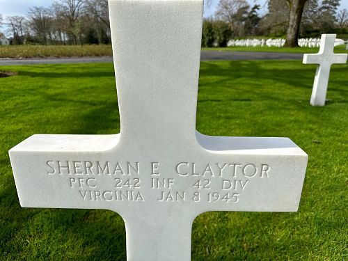 Pfc Sherman E. Claytor was a weaver before he enlisted at Fort George G. Meade, Maryland on 13 May 1944.His brother, Eugene, is buried next to him.