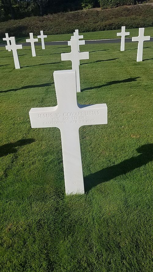 Pvt Jesus V. Covarrubias was employed at the U.S. Government, Camp Pendleton before he enlisted in Los Angeles, California on 20 January 1943.He was killed by artillery shell fragments to his face and leg.