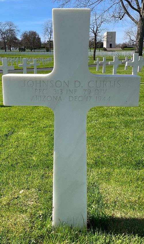 Pfc Johnson D. Curtis was employed at a hospital before he enlisted in Phoenix, Arizona on 16 December 1943.Source of information: Peter Schouteten, www.abmc.gov, www.wwiimemorial.com, www.archives.gov - WWII Enlistment Record, www.ancestry.com - Headstone and Interment Record / U.S. WWII Draft Cards Young Men, Combat History 79th Infantry Division