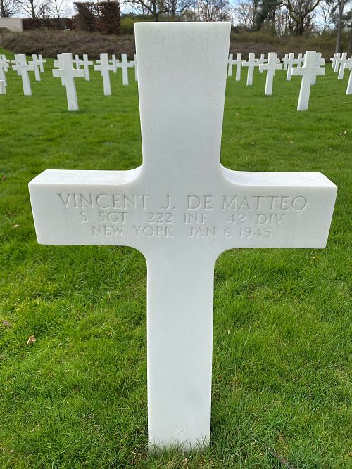 S/Sgt Vincent J. De Matteo attended high school for four years before he enlisted in Rochester, New York on 14 August 1943.Source of information: Peter Schouteten, www.abmc.gov, www.wwiimemorial.com, www.archives.gov - WWII Enlistment Record, www.ancestry.com - Headstone and Interment Record / 1940 Census, www.findagrave.com