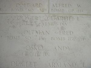 Fred Oltman enlisted in the US Army at Nashville AC Facilities, Tennessee on 26 February 1943. He and his crew were flying lead of the "B" group. The aircraft took a hit from FLAK just before bombs away, which resulted in the breaking in two of the aircraft near the waist windows. The tail section fell, striking another aircraft.Source of information: Michel Beckers, Carla Mans, www.wwiimemorial.com, NARA, Footnote.com, 486th.org, www.ancestry.com - Headstone Application for Military Veterans / WWII Jewish Servicemen Card