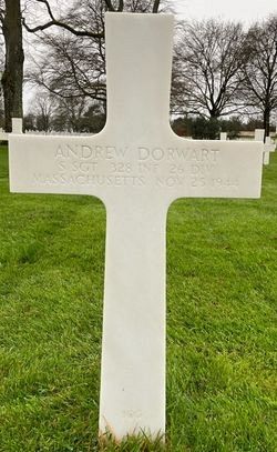 S/Sgt Andrew Dorwart attended high school for one year and was a machinist at the Livingston Mills before he enlisted in Springfield, Massachusetts on 17 March 1941.He was first buried at the Temporary American Military Cemetery in Limey, France.