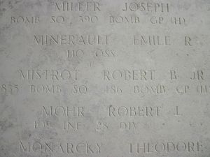 He enlisted in the US Army in Houston, Texas on 28 September 1942. He and his crew were flying lead of the "B" group. The aircraft took a hit from FLAK just before bombs away, which resulted in the breaking in two of the aircraft near the waist windows. The tail section fell, striking another aircraft.Source of information: Michel Beckers, Carla Mans, WWIIMemorial.com, NARA, Footnote.com, 486th.org, www.ancestry.com - Mistrot Family Tree
