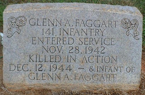 Pvt Gleen A. Faggart enlisted at Camp Croft, South Carolina on 22 November 1942. He trained at Fort Jackson, South Carolina, Fort Bragg, North Carolina, and Fort Meade, Maryland.He is remembered at the Cross of Christ Lutheran Church Cemetery in Concord, North Carolina.