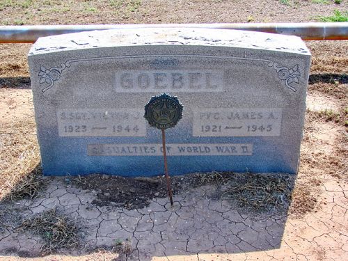 Pfc James A. Goebel attended high school for one year and worked on a farm before he enlisted in Abilene, Texas on 4 March 1943.He is remembered at the Hermleigh Cemetery in Hermleigh, Scurry County, Texas.