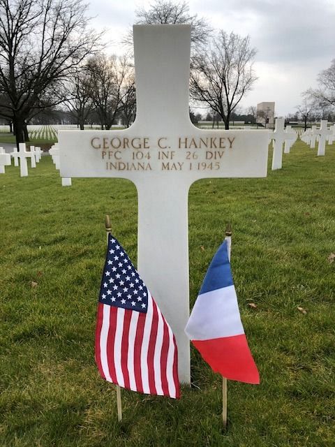 Pfc George C. Hankey attended high school for one year and was employed at the Butler Company before he enlisted in Toledo, Ohio on 2 April 1943. He was sent went overseas in August 1944.He suffered a blast injury primarily to the head on 25 April. He had brain surgery but died of his wounds on 1 May 1945. The exact location where he died is not known.