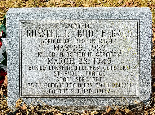 S/Sgt Russell J. Herald was a baker when he joined the National Guard in Washington, District of Columbia on 3 February 1941.He was killed by artillery shell fragments to his head and leg.