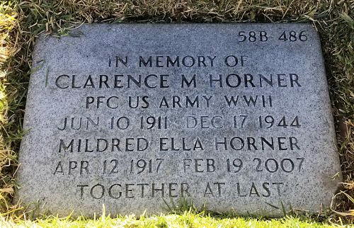 Pfc Clarence M. Horner attended high school for one year and was a policeman before he enlisted at Camp Dodge, Iowa on 31 March 1944.He was a member of a patrol whose mission was to cross the Blies river and secure the high ground. While crossing the river his boat turned over and he was dragged under by his equipment.