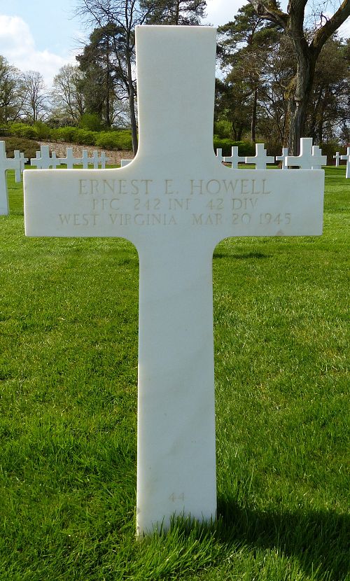 Pfc Ernest E. Howell was taken prisoner and died in Stalag IX-B.Source of information: Peter Schouteten, www.abmc.gov, www.wwiimemorial.com, www.archives.gov - WWII Prisoners of War Data File, www.ancestry.com - Headstone and Interment Record / U.S. WWII Draft Cards Young Men / Ann Clark Seich Family Tree / 1930 Census