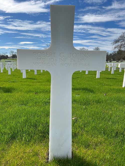 Pfc Robert G. Johns was employed at the Hamilton Machine Company before he enlisted.He was first buried at the Temporary American Military Cemetery in Limey, France.
