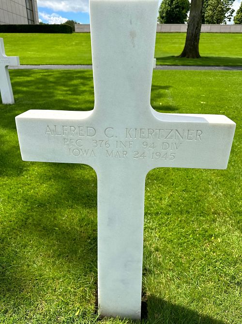 Pfc Alfred C. Kiertzner worked on a farm before he enlisted in Fort Snelling, Minnesota, on 22 July 1944.Source of information: Peter Schouteten, www.abmc.gov, www.wwiimemorial.com – Battle Creek American Legion, www.archives.gov – WWII Enlistment Record, www.ancestry.com - Headstone and Interment Record, www.findagrave.com, http://www.94thinfdiv.com, www.newspapers.com – The Des Moines Register - 7 October 1945