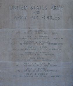 Pfc John Kopka attended high school for three years and was a mechanic, employed by S. G. Davison.He was taken prisoner of war in Italy on 6 February 1944 during the Anzio campaign.