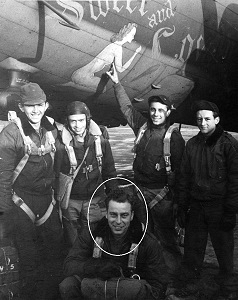 "The aircraft was last seen at 50 degrees 45 minutes North, 12 degrees 5 minutes East about three minutes after bombs away over the target at Derben, Germany. The plane was hit by anti-aircraft fire, badly damaging the left wing. According to S/Sgt Harry J. Dover, who witnessed the hit "The ship went into a spin at 4 o'clock and then exploded before it hit the ground." One eye-witness reported that the Ball Turret Gunner stated over the interphone that one parachutes was seen leaving the ship, although the other witness stated they hadn't seen any of the crew. Sgt Robert A. Templeton has returned to duty, then rest of the crew have been reported killed in action."