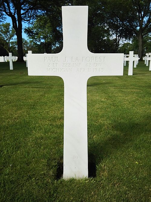 2nd Lt Paul J. La Forest attended high school for four years and was a repairman before he joined the National Guard in Detroit, Michigan on 24 February 1941.Source of information: Peter Schouteten, Kathy McDermott, www.abmc.gov, www.wwiimemorial.com, www.archives.gov - WWII Enlistment Record, www.ancestry.com - Headstone and Interment Record / 1940 Census / Michigan Marriage Records, www.findagrave.com
