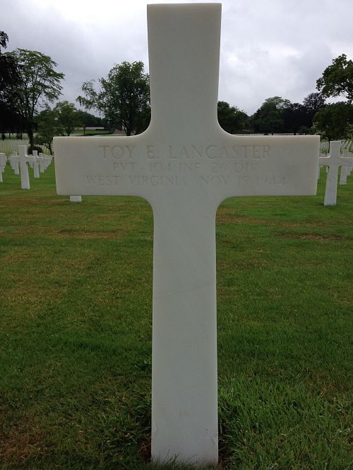 Pvt Toy E. Lancaster worked on a farm before he enlisted at Fort Thomas, Kentucky on 28 April 1944.He was first buried at the Temporary American Military Cemetery in Limey, France.