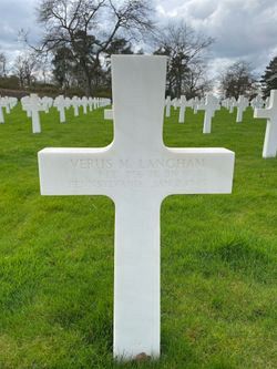1st Lt Verus M. Langham joined the Regular Army a first time on 26 January 1934 in Allegheny County, Pennsylvania. He re-enlisted on 5 April 1937 in Harrisburg and was sent to the Phillipinnes. He re-enlisted a third time on 20 September 1939. He was sent overseas on 9 July 1943.He was reported missing in action on 30 December 1944 in the vicinity of Sigolsheim France. Later it was clear that he had been wounded in action and taken prisoner. He died of his wounds in a German hospital in Emmendingen, Germany.