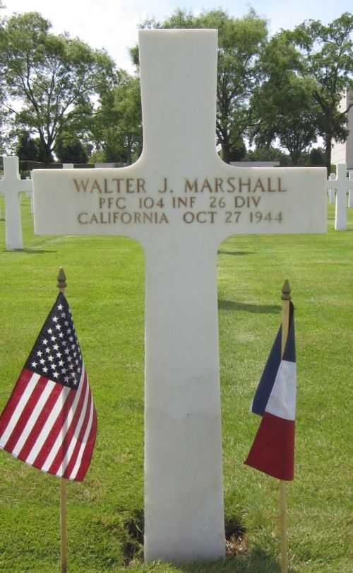 Pfc Walter J. Marshall attended high school for two years and was employed at the Marinship Corporation before he enlisted in San Francisco, California on 12 November 1943.He was killed by an artillery shell blast.