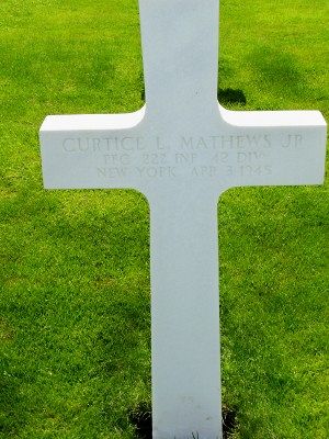 Pfc Curtice L. Mathews Jr. graduated from Roosevelt High School in 1942 before he enlisted in New York City, New York on 17 June 1943.He was awarded the Soldier's Medal for heroism on April 3 1945. Per his Commanding Officer, "While riding in a truck as his outfit moved into position near Wurzburg, Private Mathews threw his body without hesitation upon a grenade which had become activate accidentally and absorbed the shock of the explosion so that not another man in the truck was injured."