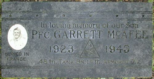 Pfc McAfee is remembered at the Oakwood Cemetery in Corsicana, Navarro County, Texas.