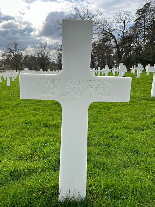 Source of information: Peter Schouteten, Kathy McDermott, www.abmc.gov, www.wwiimemorial.com, www.ancestry.com - Headstone and Interment Record / U.S. WWII Draft Cards Young Men / 1930 Census / Russi Tree, After Action Report 35th Infantry Division