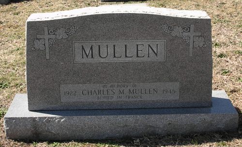 S/Sgt Charles M. Mullen attended high school for four years and was a routeman before he enlisted in Charlottesville, Virginia on 19 November 1942.He is also remembered at the Oak Hill Cemetery in Fredericksburg, Fredericksburg City, Virginia.