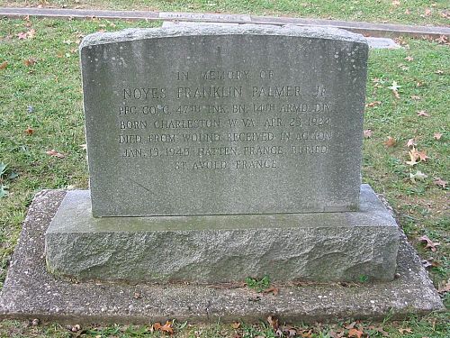 Pfc Noyes F. Palmer Jr. was taken prisoner and died from wounds received in action 13 January 1945 in a hospital in France.He is also remembered at the Mountain View Memorial Park in Charleston, Kanawha County, West Virginia.
