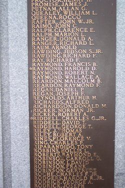 Pfc Charles G. Riddell attended high school for four years before he enlisted in Boston, Massachusetts on 21 September 1943.He is remembered on the WWII memorial monument in Swampscott.
