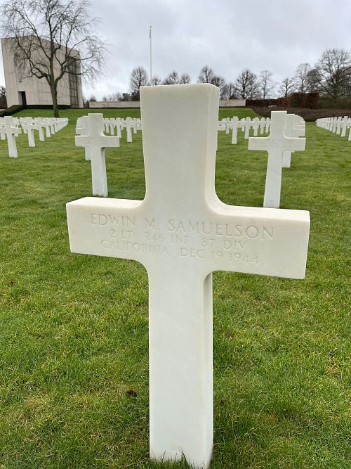 2nd Lt Edwin M. Samuelson attended the University of California at Los Angeles (UCLA) for one year before he enlisted in Los Angeles, California on 6 February 1943.He was first buried at the Temporary American Military Cemetery in Limey, France.