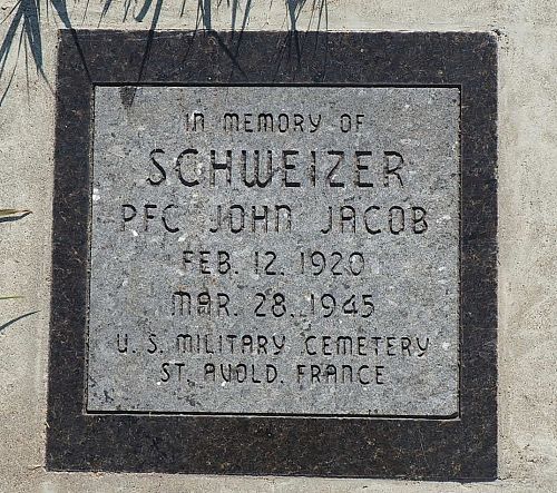 Pfc John J. Schweizer worked on the farm before he enlisted in Pueblo, Colorado on 24 August 1942.He was reported wounded in action by artillery shell fragments to his skull.