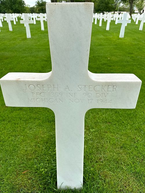 Pfc Joseph A. Stecker was first buried at the Temporary American Military Cemetery in Limey, France.Source of information: Peter Schouteten, www.abmc.gov, www.wwiimemorial.com, www.ancestry.com - Headstone and Interment Record