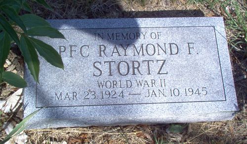 Pfc Raymond F. Stortz attended high school for four years and worked on a farm before he enlisted at Fort Leavenworth, Kansas on 3 May 1944.He is remembered at the Bethel Cemetery in Cloud County, Kansas.