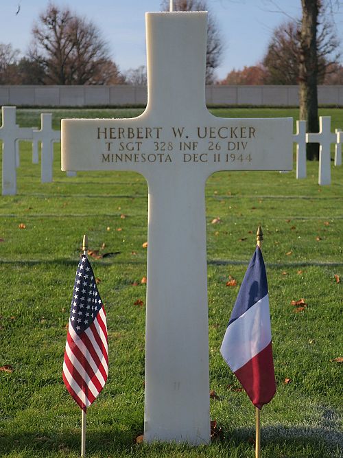 T/Sgt Herbert W. Uecker worked on the family farm.He was first buried at the Temporary American Military Cemetery in Limey, France.