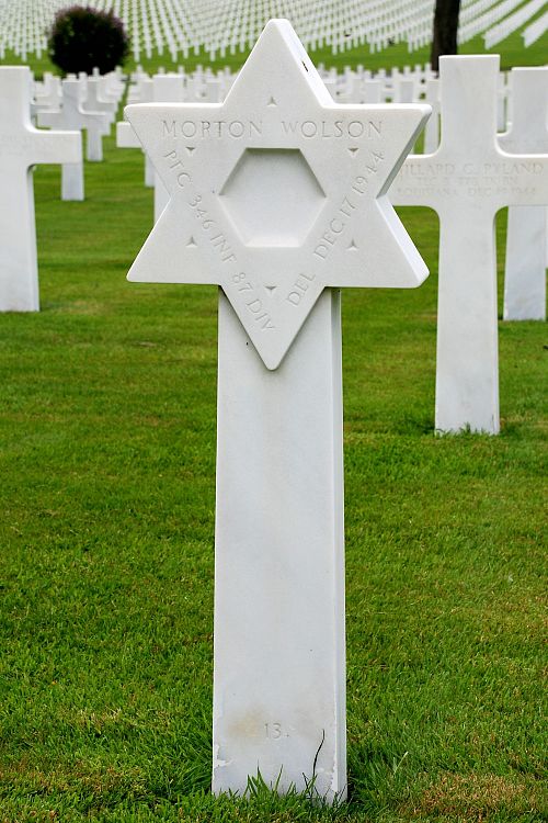 Pfc Morton T. Wolson attended college for one year before he joined the U.S. Army Reserve in New York City, New York on 26 May 1943. He was sent overseas in October 1944.He was first buried at the Temporary American Military Cemetery in Limey, France.