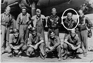 "Hit by flak over Schweinfurt on Oct. 14, 1943. We lost the formation and headed for France. At 18,000 feet we caught fire, fighters came in to finish us off. We began bailing out. I told Sgt. Louis Buonarobo, ball turret gunner to get out. He refused saying that he would stay put and swing his empty guns to keep fighter(s) off. He was hit by a 20mm (shell) which killed him. Most of the crew bailed out at 15,000."